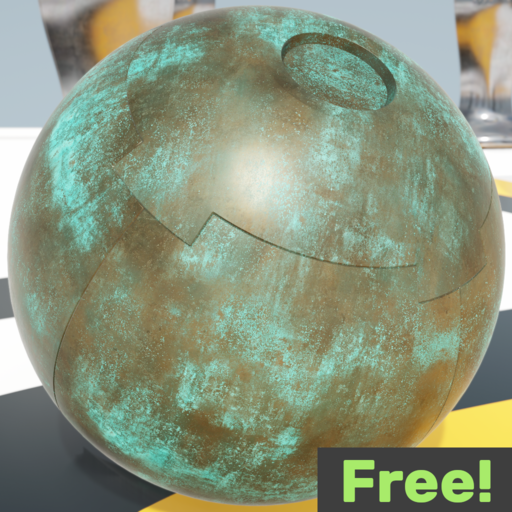 High qualtiy metal material - old copper with spots of patina. Looks best with proper reflections over it's surface.