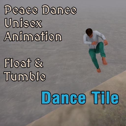 FURNITURE ITEM: Use room edit tools to place this tile wherever you want a 'click to dance' icon. Add several for a group or club scene. Includes the tumbling, flying, unisex Peace Dance.