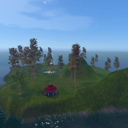 250 x 250 Island. Colorful Parrots (Macaws) Lush Greenery. Gazebo. Large flat area for a house. Pond. Always daylight. Search for Greenlea to visit in-world.