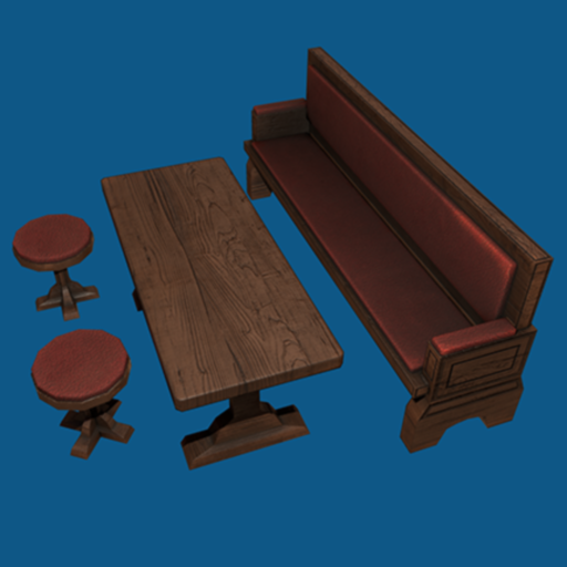 - Table and Seating - Old wood pub seating includes: Old wood bench and stool with red leather seating and sit animations plus old wood table. Perect for any old tavern, Pub or Club.
