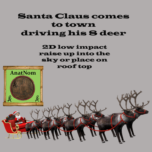 Santa Claus and his 8 Reindeer 2D Decoration Raise up place on roof or in sky Updated collider