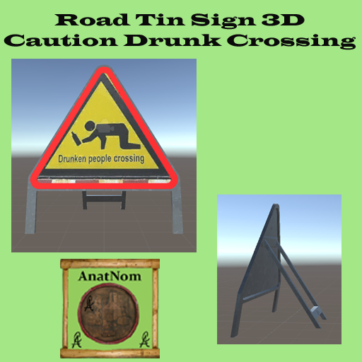 Road Caution Sign 3D Drunken people crossing