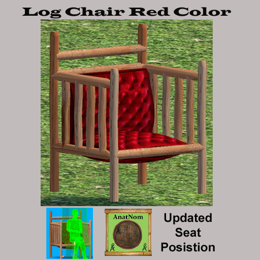Log Chair Red Color matches the Red Couch in shop. Sit Animations included