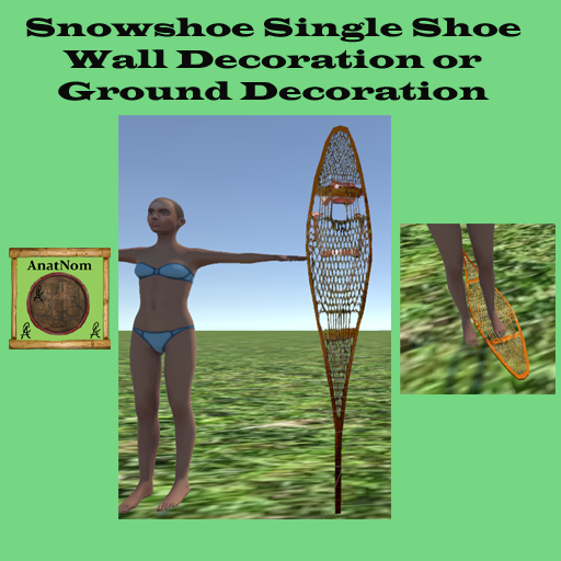 A single snowshoe to decorate you wall, or grond level decoration. Same as the traditional criss cross decoration available in the shop. It spawns out at ground level, so you can stick it in a snowbank if you wish. Scale is allowed but it is scaled as the photo indicates. Old rawhide long trailers. See at snowtracks Roadhousein SS. Might be available as shoes you can wear in the future.