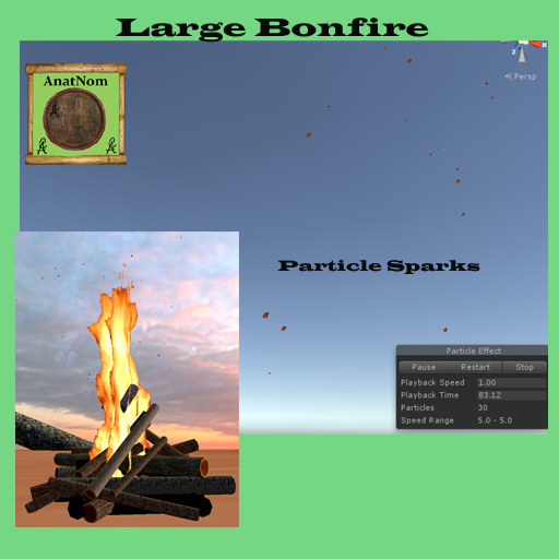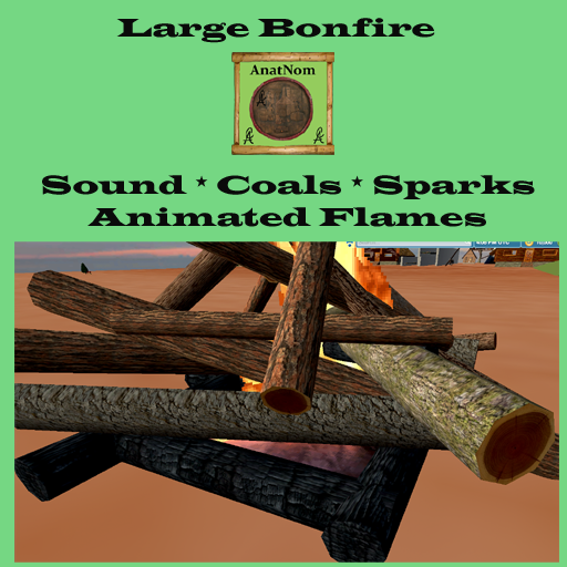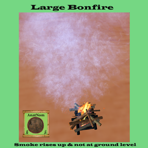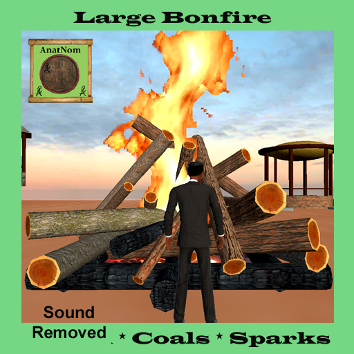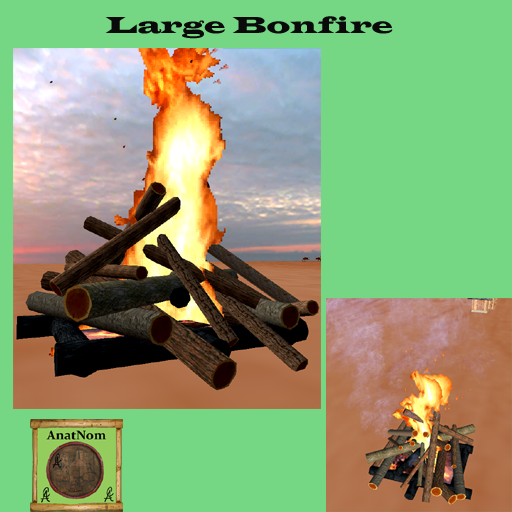 Large Bonfire with animated fire and coals, smoke, crackle sound, throws light around it. Large fire for a bonfire party! Scale Allowed: hold shift and drag size in porportion. Updated Sound Removed