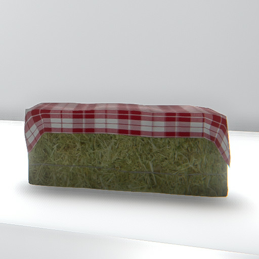 Simple hay bale with plaid cover. No pose.