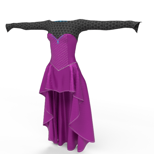 Princess Asymetric Dress: Rich silk cloth, fractal patterns and sparkling gems and perls. Lace up back for adjustable fit. Ready for the ball or that special prince.