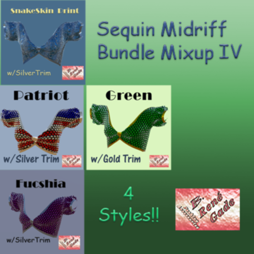 Ladies, stand out with these classy sequin off-shoulder vintage designs with shiny trims and give your wardrobe variety with this LIMITED OFFER Sequin Midriff Bundle Mixup 1 that includes 4 stylish variations at a DISCOUNT PRICE. You can mix and match to co-ordinate with your other SineSpace designs. B.Rene Gade Fashions and Accessories.