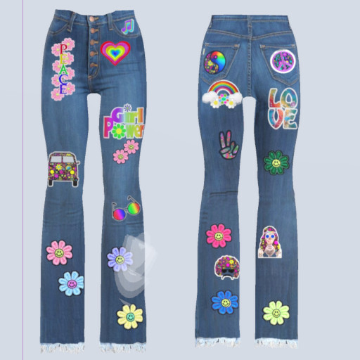 These CLASSIC high waisted bellbottoms have hand sewn custom patches with a real retro vibe.