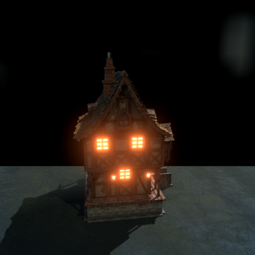 Building with glowing lights in the windows. Decoration only