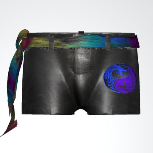 Leather sexy shorts with Zen emblems and cloth physics belt.