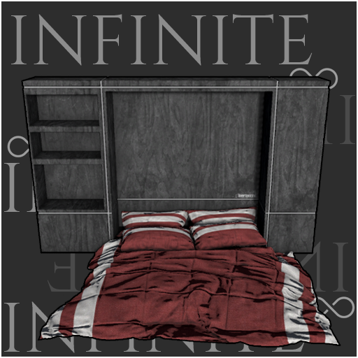 A beautiful bed with a built in unit. Available in additional comforter and wood options. Seats 2 avatars! All from Sinespace's #1 Furniture Store - INFINITE Furniture!