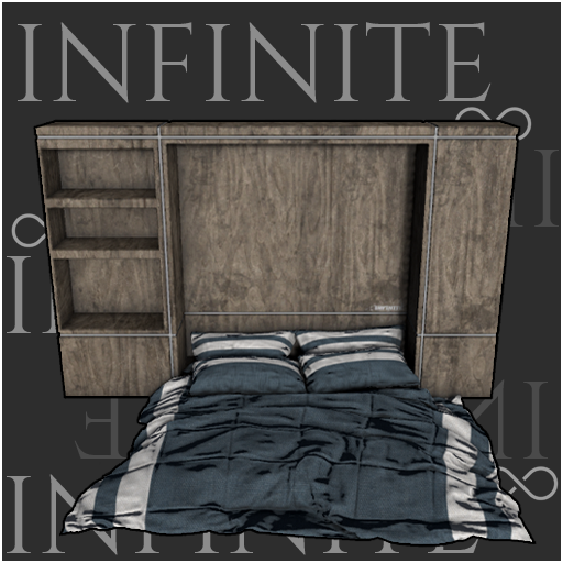 A beautiful bed with a built in unit. Available in additional comforter and wood options. Seats 2 avatars! All from Sinespace's #1 Furniture Store - INFINITE Furniture!