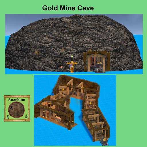 Gold Mine Mountain Mine Shaft with track & ore car Gold bars & nuggets