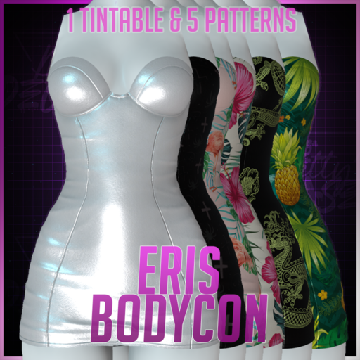 The Eris Bodycon, a sexy strapless leather-fabric bodycon dress. Available in default color and pattern variants. Only the tintable option allows you to customize the colors using the color wheel. Need more help? click on the 'Website' button at the top! ? Or visit https://sinespacehub.com/
