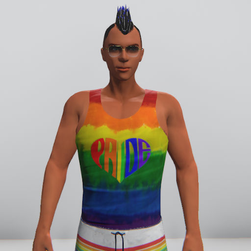 Mens Tie Dye Tank with Pride heart shaped letters on the front.