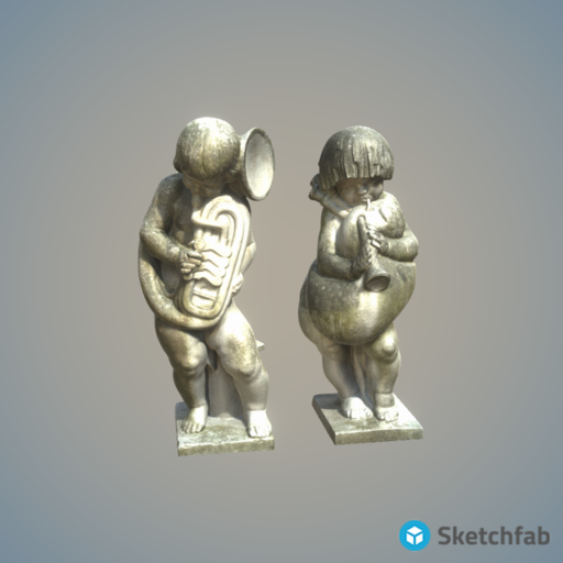 Two musical putti made of lime sandstone by Josef Franz Riedl.
