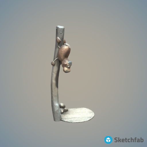 The monkey on a wooden trunk is part of the water playground in the Vienna Stadtpark.