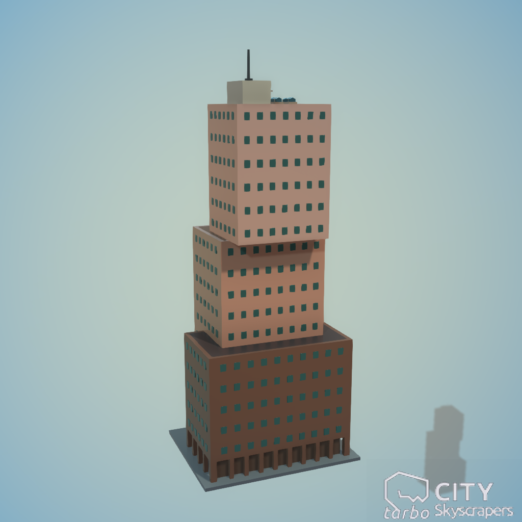 From the Tarbo - City 'Skyscrapers' Pack Collection A low poly asset pack of Skyscrapers in a polygonal style. Modular parts easy to piece together in a variety of combinations to create your personal city environment. Search Tarbo Studio in the Furniture Tab for more from this collection.