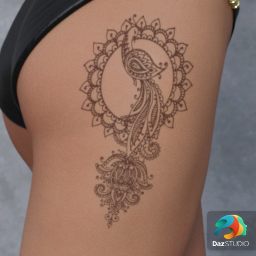 From the DAZ Originals Kala Collection Few women are able to truly captivate those around them quite like Kala with her alluring (yet classy) demeanor. Adorn yourself in the henna tattoos by layering them creating your personalized look. Hypnotically seductive makeup and eyes complete this skin and shape. Search DAZ in the Clothing tab for more from this collection and creator. IMPORTANT NOTE: Must buy Kala Hip Henna Tattoo 1Lb to complete this tattoo