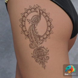 From the DAZ Originals Kala Collection Few women are able to truly captivate those around them quite like Kala with her alluring (yet classy) demeanor. Adorn yourself in the henna tattoos by layering them creating your personalized look. Hypnotically seductive makeup and eyes complete this skin and shape. Search DAZ in the Clothing tab for more from this collection and creator. IMPORTANT NOTE: Must buy Kala Hip Henna Tattoo 1Rb to complete this tattoo