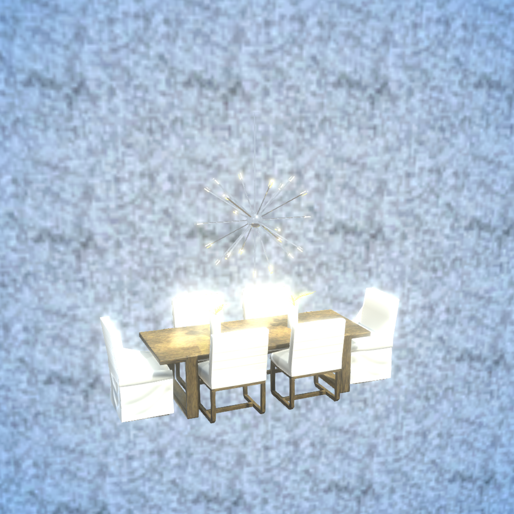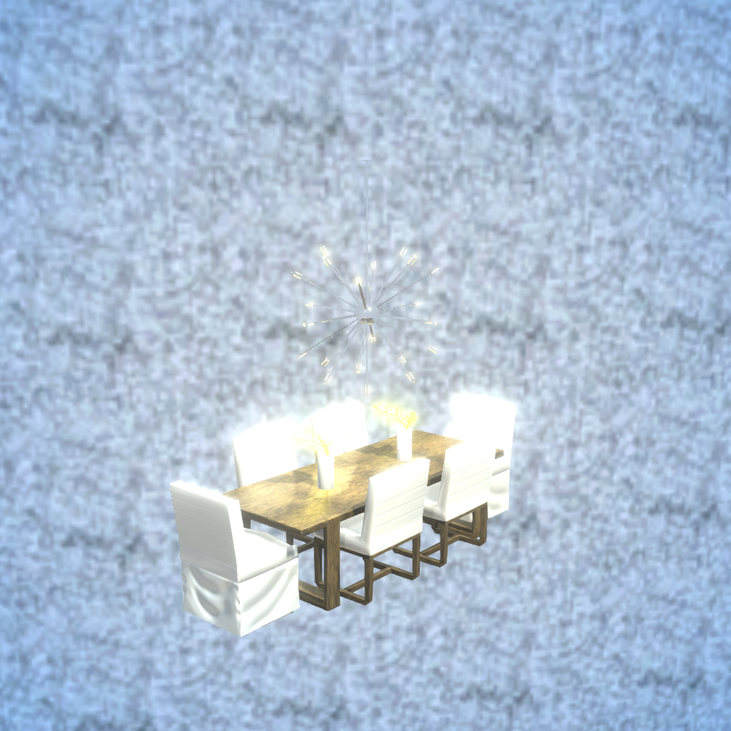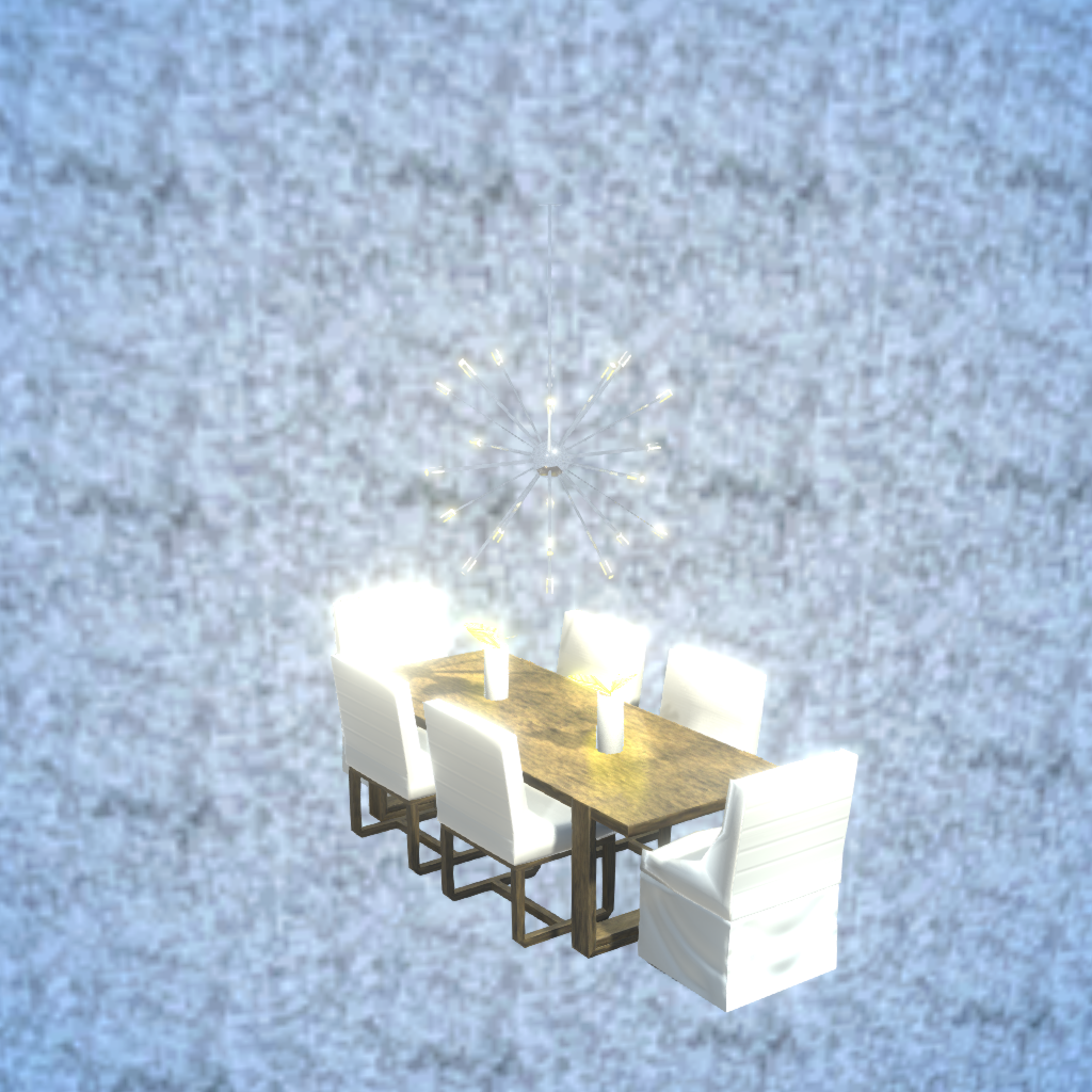 From the Home Needs Collection A full table and chair set. Includes decoration and a modern style hanging light. Search for Globe Design under furniture for more items from this creator.