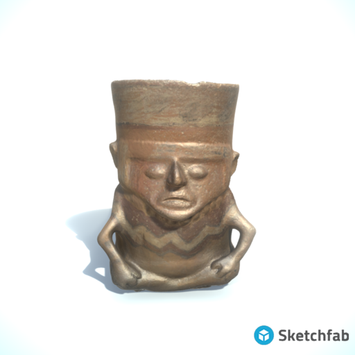 The vessel from W?adys?aw Kluger’s collection comes from Peru, from the pre-Columbian period. The specimen was made of clay by shaped in a mould. Some elements were manually modelled (nose, ears, hands), then the vessel was fired to a bright red color. The surface is matt.