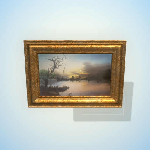 Framed_Oil_Paintings_Pach_Vol.2. It's a low poly asset of original hand painted landscape pictures framed in wooden or vintage metal frames.
