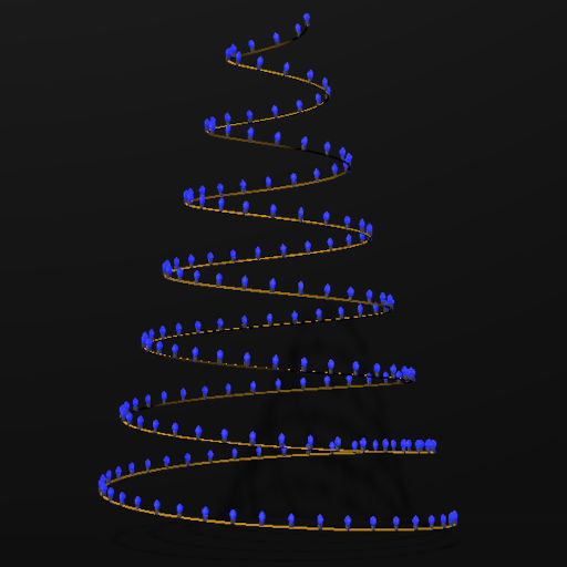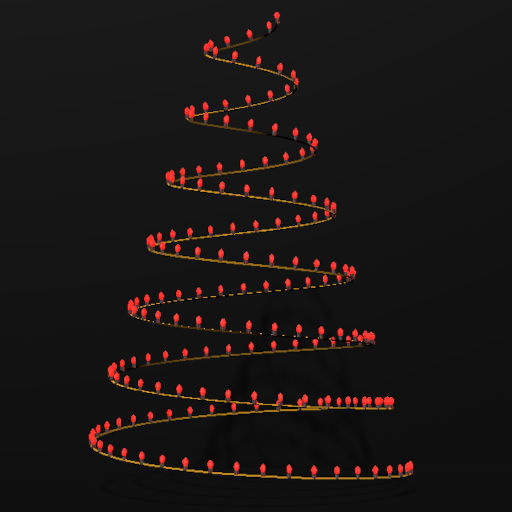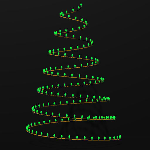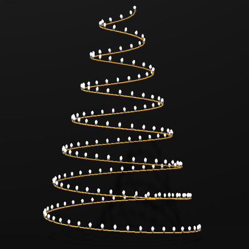 Christmas Tree Shaped decoration with white lights and gold spiral animation.