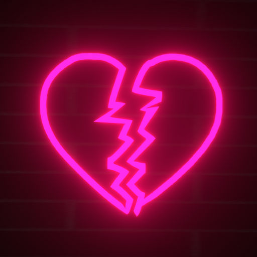 Flashing red neon sign of a broken heart. Click to toggle from flashing to always on.