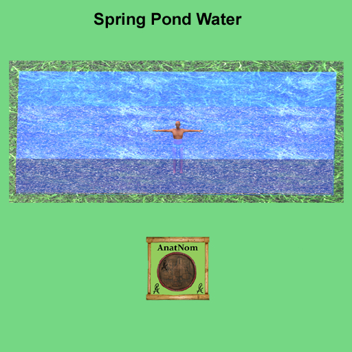 Spring Pond Water thay flows (moves) for pond or creek. Gravel bottom, water is almost chest high, semi transparent. Stretch for a creek or different size pond. 10x10x1+ high
