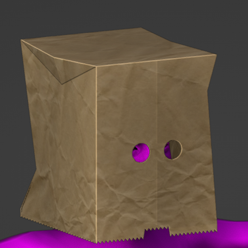 A bag for your head. A little scrunched but it'll do. Holes for eyes. Added ridge detail to the bag opening.