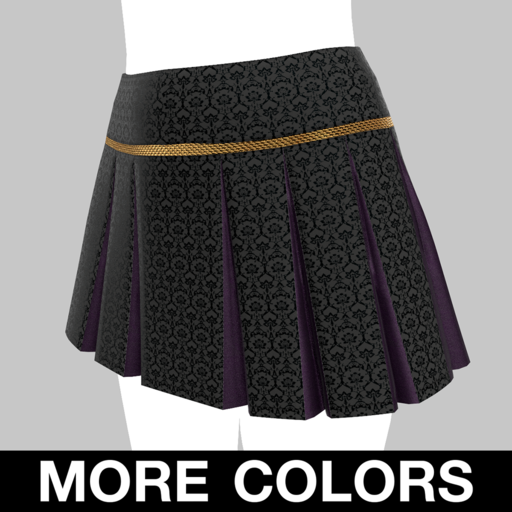 Strips of fabrics have been loosely arranged and sewn together with the finest duchess satin to form a skimpy mini skirt. Trimmed with textured, contrasting fabrics, and layered over a gold tulle petticoat. Fashioned in fabrics to match the Luscious Pirate Jacket. Features high quality model, advanced materials, and cloth physics (where available).