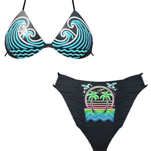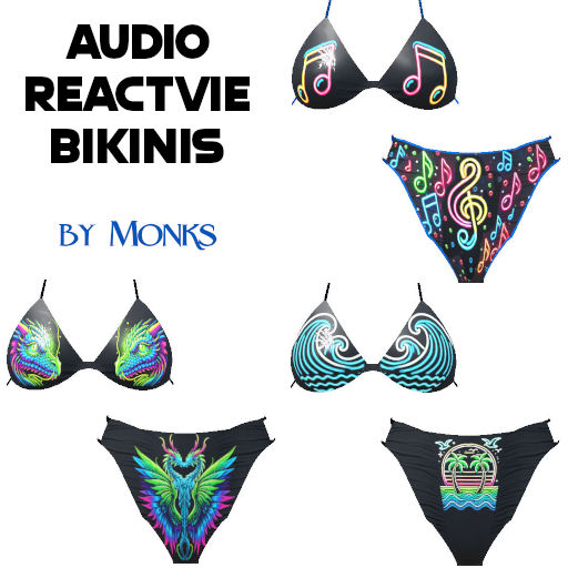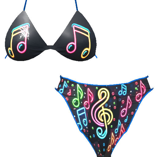 Sexy String Bikini in a variety of patterns and colors neon glows with music.