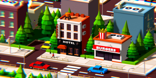 Low Poly City Block A Hey guys it's first block of a great low poly city package that contains buildings , cars , trees , roads and etc.