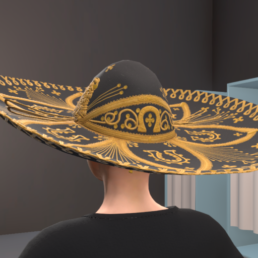 An elaborate black and golden sombrero with fine patterns. A symbol of prestige at grand celebrations.